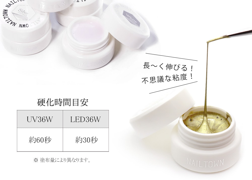 トップ > ジェルネイル用品 > ジェル > ネイルタウンジェル > 【ネコポス送料無料】ネイルタウンジェル シルクジェル ブラック/ホワイト/ゴールド/シルバー 3g入り