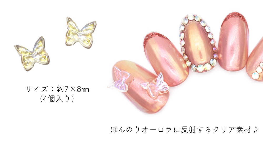 【ネコポス送料無料】ネイルパーツ オーロラバタフライ [4個入り]