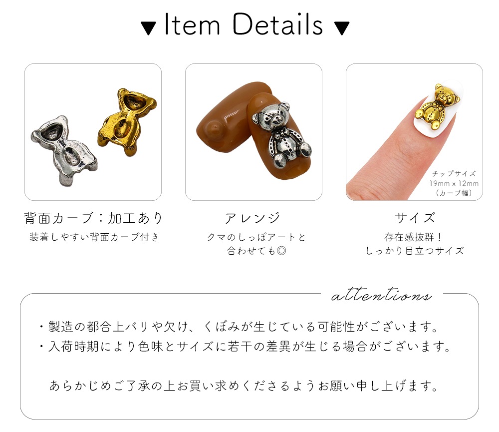 トップ > ネイルアート用品 > メタルネイルパーツ > 【ネコポス送料無料】ネイルパーツ アンティークベアパーツ [ゴールド/シルバー] 3個入り