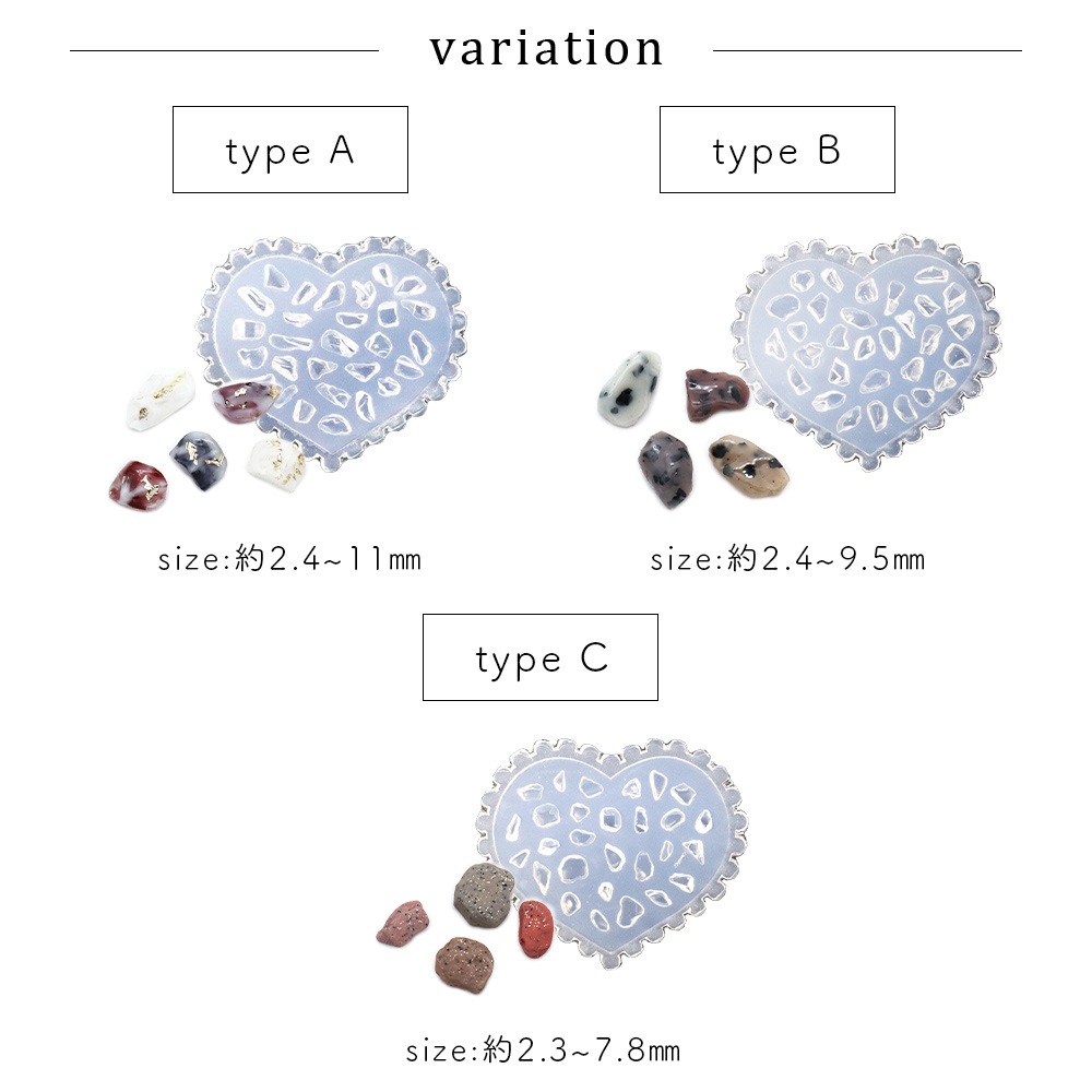 トップ > ネイルアート用品 > シリコンモールド > 【ネコポス送料無料】ネイルツール シリコンモールド 天然石風 全3タイプ