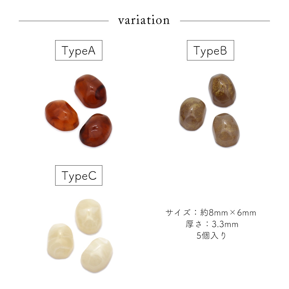 トップ > ネイルアート用品 > 天然石風ストーン > 【ネコポス送料無料】ネイルパーツ 天然石風マーブルパーツ 5個入り 全3タイプ