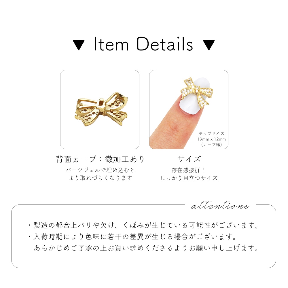 トップ > ネイルアート用品 > メタルネイルパーツ > 【ネコポス送料無料】ネイルパーツ ジルコニアビッグリボンパーツ ジルコニア製 [ゴールド/シルバー] 2個入り