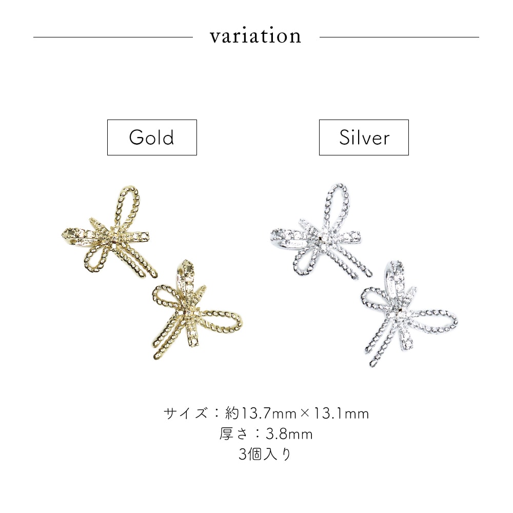 トップ > ネイルアート用品 > メタルネイルパーツ > 【ネコポス送料無料】ネイルパーツ ロープ風リボンパーツ [ゴールド/シルバー] 3個入り
