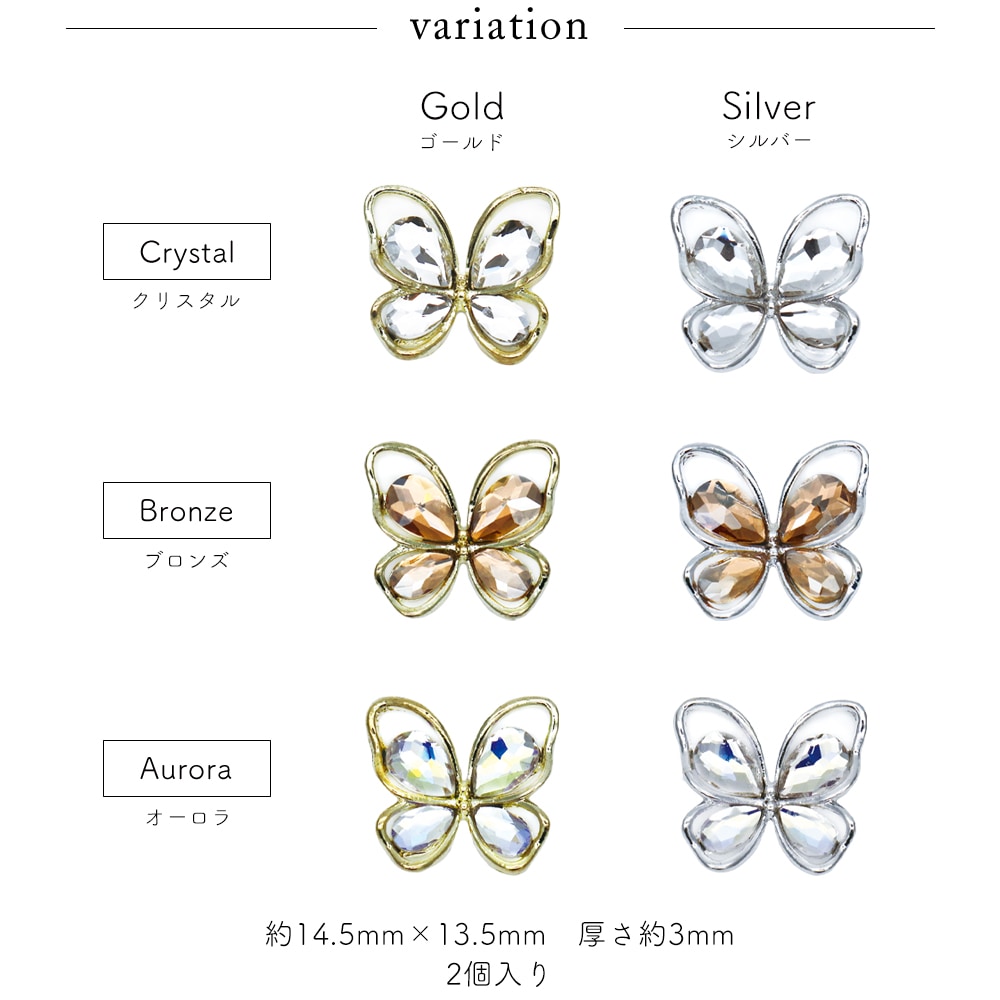 ネイルアート用品 > メタルネイルパーツ > ビジューパーツ > 【ネコポス送料無料】ネイルパーツ エレガントフレームストーンバタフライパーツ 全6種 2個入