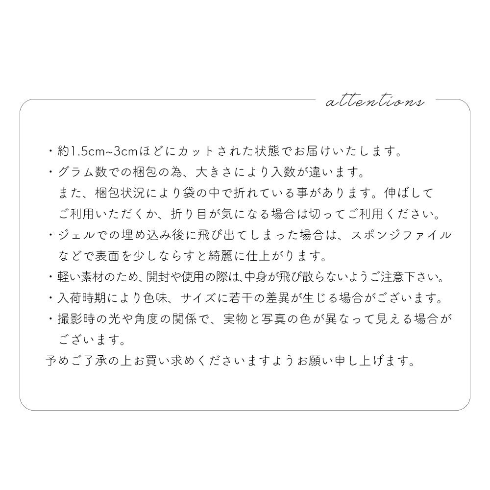 ・グラム数での梱包の為、大きさにより入数が違います。