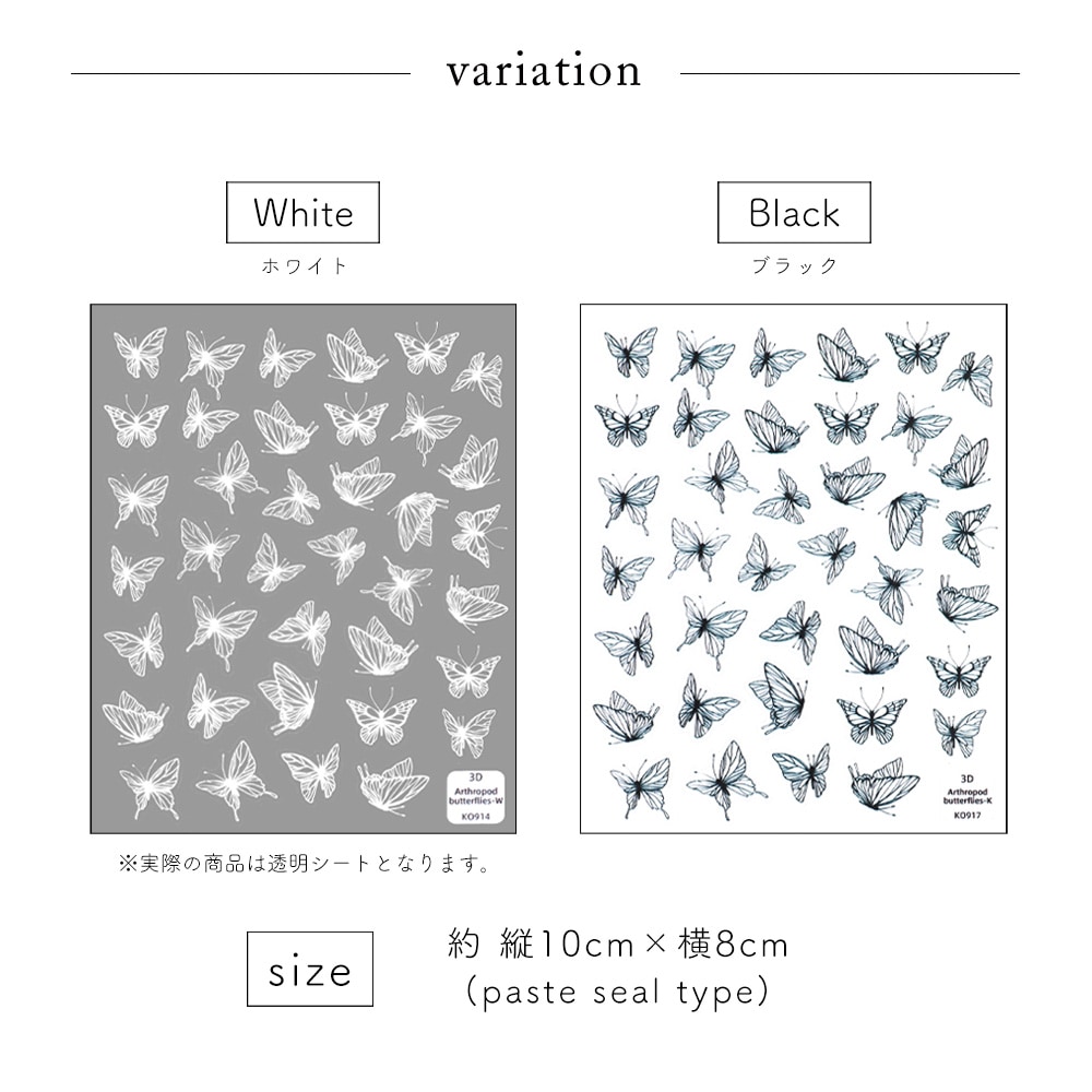 【ネコポス送料無料】ネイルシール ラインドローイングバタフライシール [KO914/KO971] [ホワイト 白/ブラック 黒] 全2色