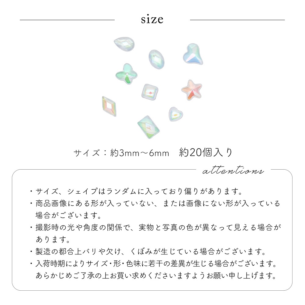 トップ > ネイルアート用品 > プラパーツ > 【ネコポス送料無料】ラインストーン ファンシーランダムオーロラストーン 約20個入り セルフネイル ジェルネイル