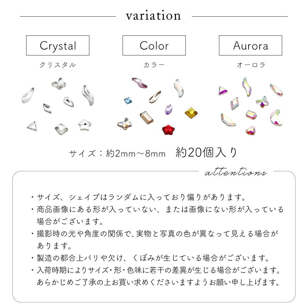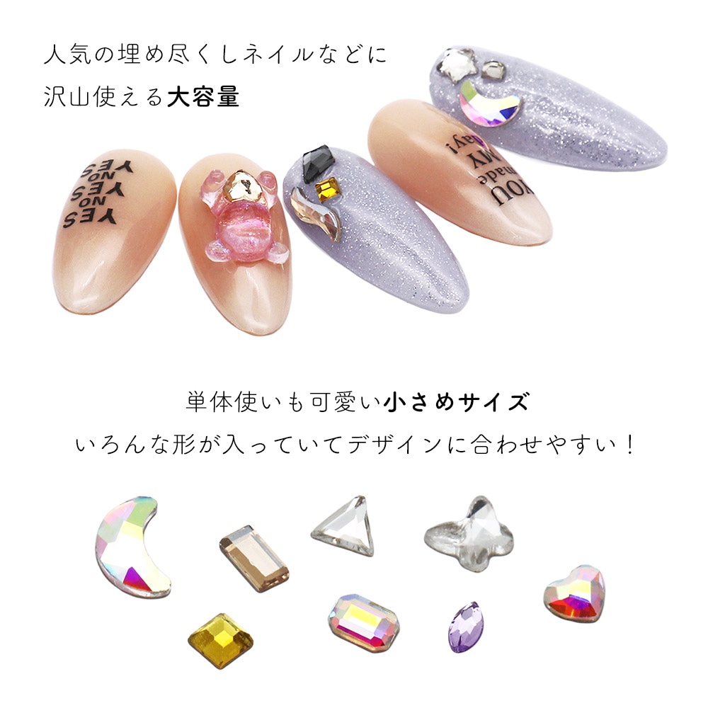 星やハート、スクエアなど様々な形・サイズのストーンをランダムにMIX◎