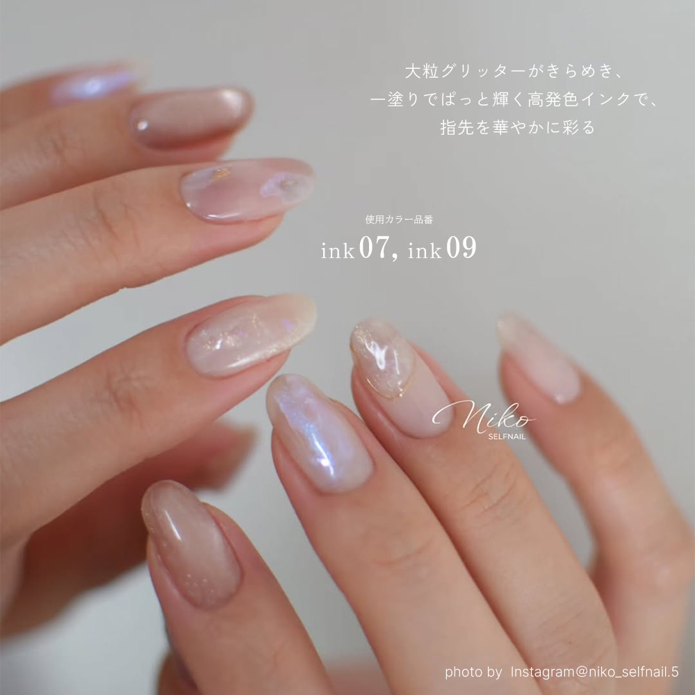 柔らかく広がる発色ときらめきで、滲みやぼかしのニュアンスアートも思いのままに。