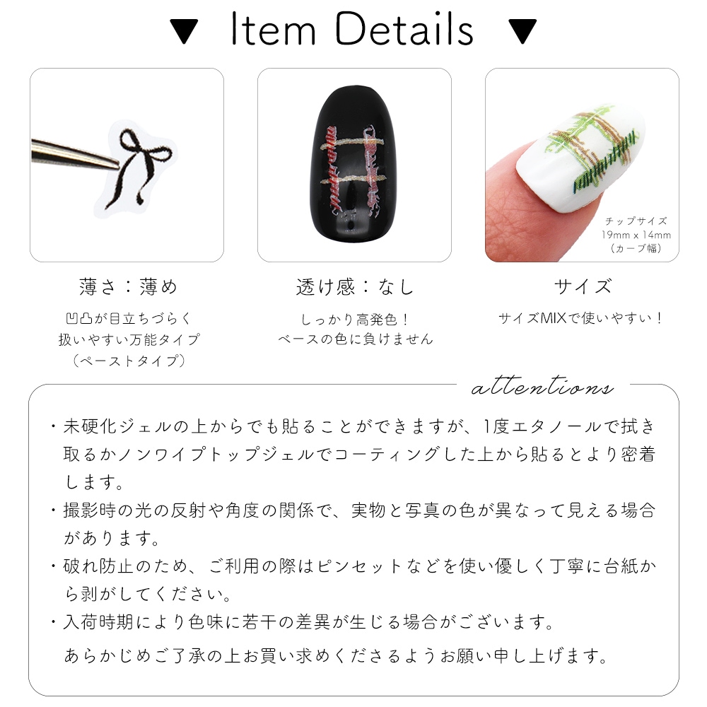 ・破れ防止の為、ご使用の際はピンセットなどを使い優しく丁寧に台紙から剥がして下さい。