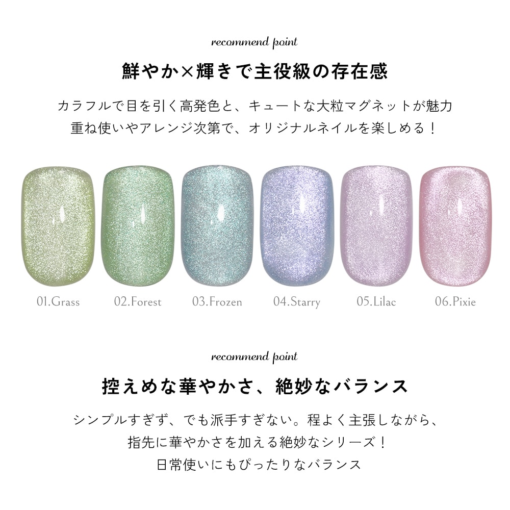 ジェルネイル用品 > ジェル > 全色セット > 【ネコポス送料無料】輝く粒子 マグネットネイル ネイルタウンジェル ポリッシュタイプ フェアリードリームシリーズ 黒くなりにくい 全6色セット 全色セット 約5ml ボトルジェル