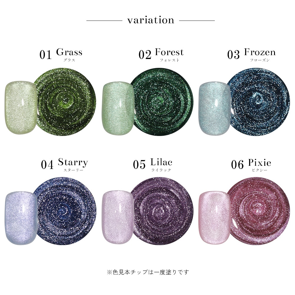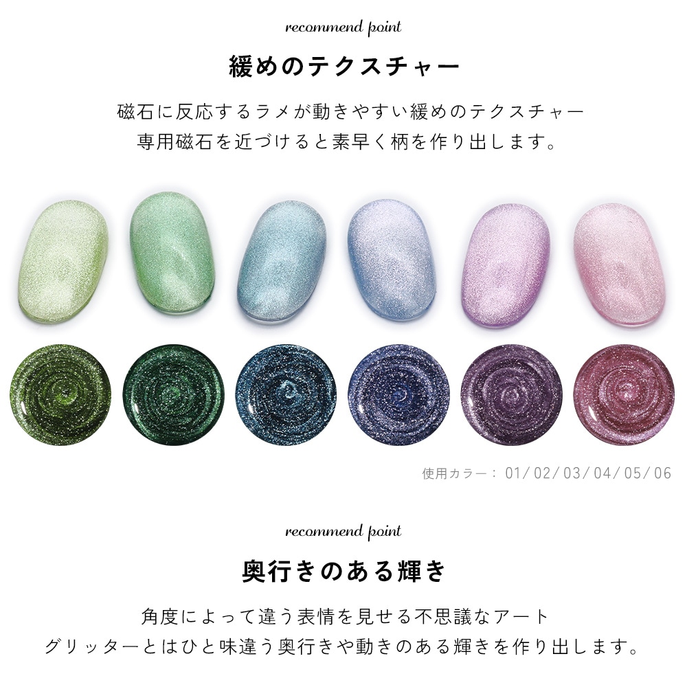 同じジェルでも磁石の当て方により様々な姿に変身!