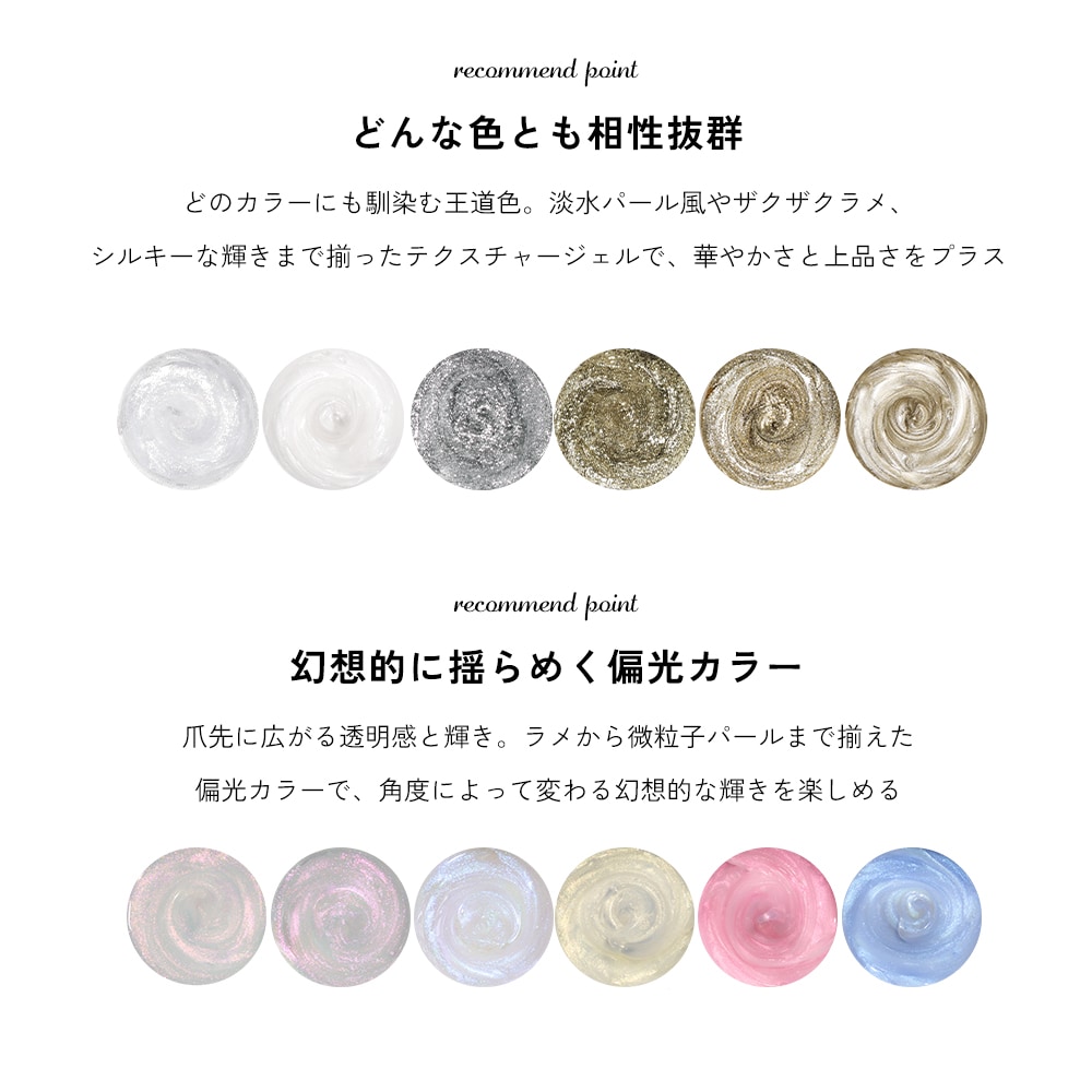 細やかな粒子から大粒まで、多彩なラメをそろえたジェル
