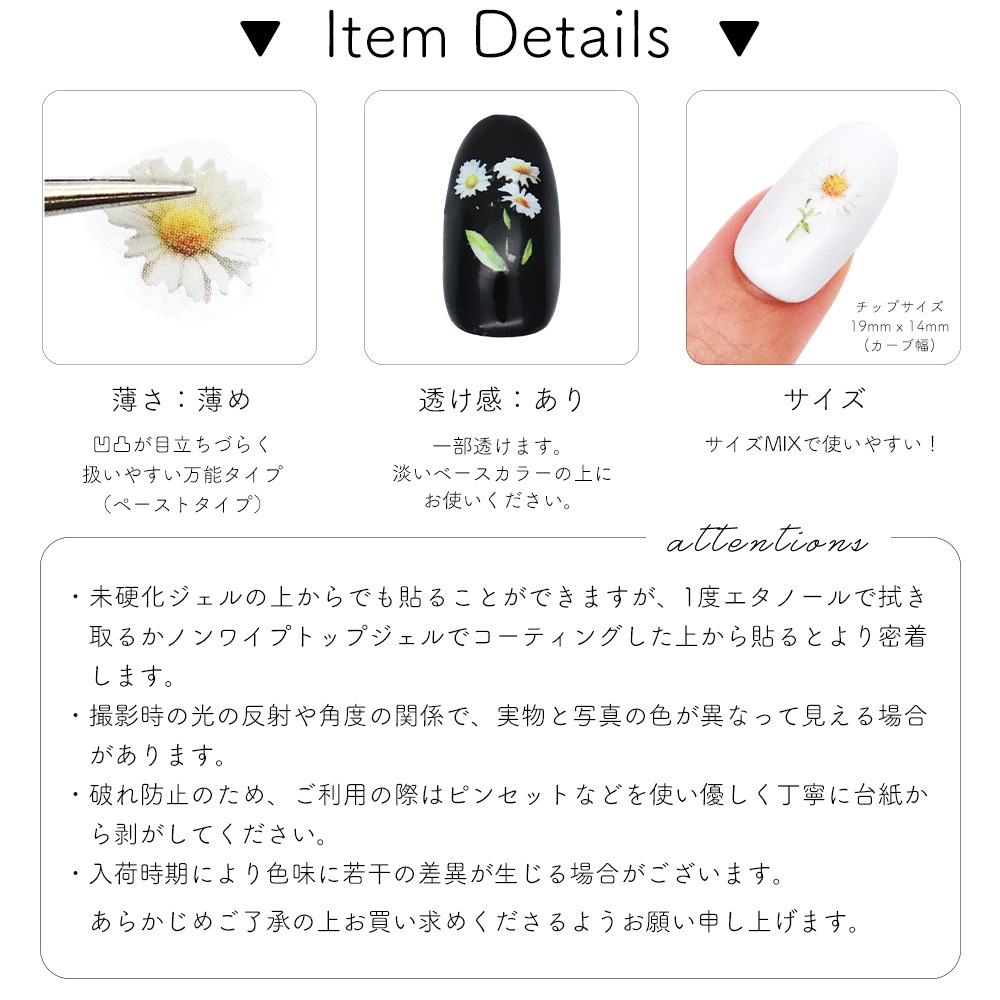 トップ > ネイルアート用品 > ネイルシール > ネイルシール > フラワー&ボタニカル > 【ネコポス送料無料】ネイルシール ブルーミングホワイトデイジーシール