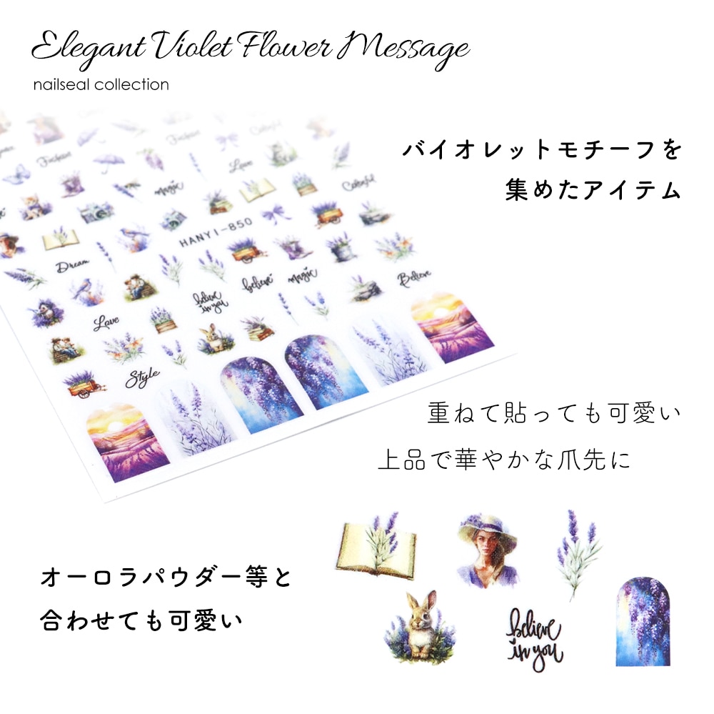 【ネコポス送料無料】ネイルシール エレガントバイオレットフラワーメッセージシール