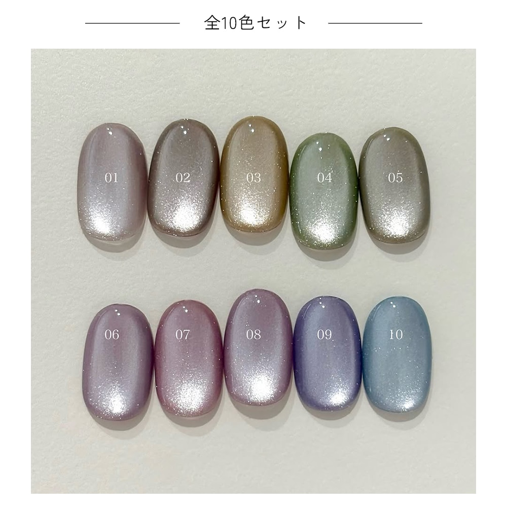 ブランド別 > NAILTOWN GEL(ネイルタウンジェル) > ポリッシュタイプジェル > 【ネコポス送料無料】輝く粒子 マグネットネイル ネイルタウンジェル ポリッシュタイプ グレースヴェールシリーズ 黒くなりにくい 全10色セット 約5ml