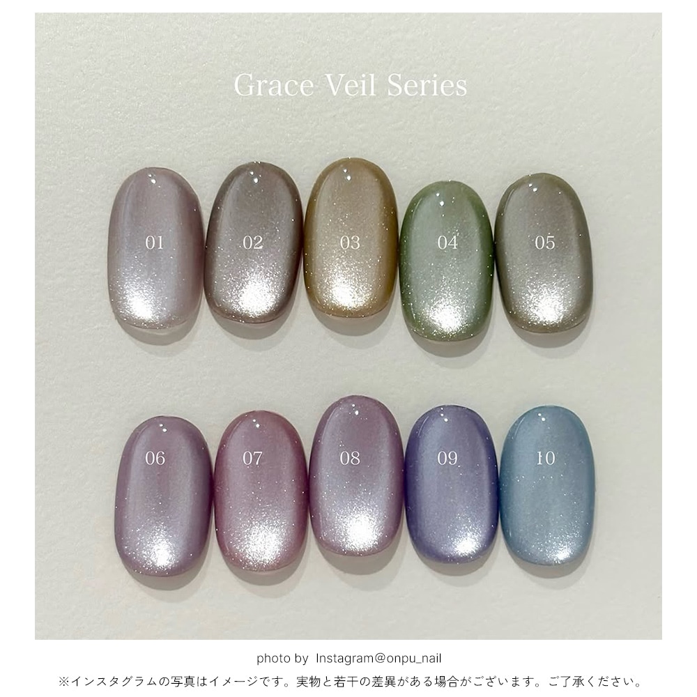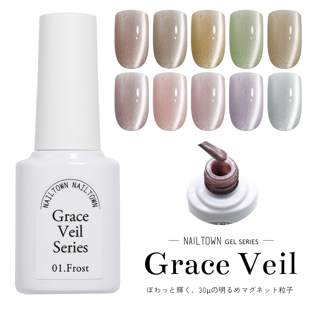ジェルネイル用品 > ジェル > ポリッシュタイプジェル > 【ネコポス送料無料】輝く粒子 マグネットネイル ネイルタウンジェル ポリッシュタイプ グレースヴェールシリーズ 黒くなりにくい 全10色セット 約5ml