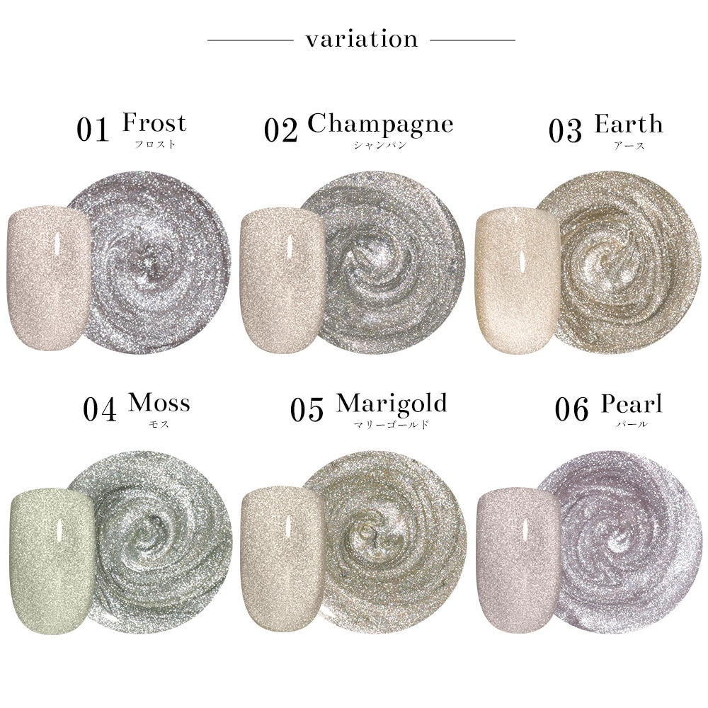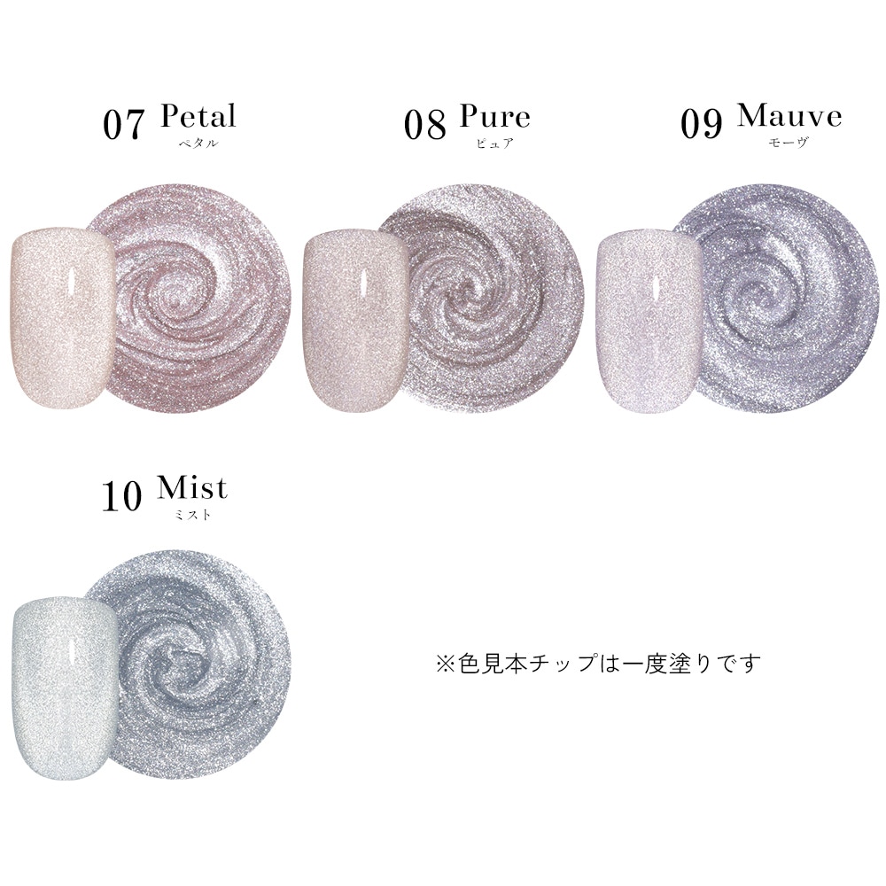 同じジェルでも磁石の当て方により様々な姿に変身!粒子が細かく繊細な輝き!