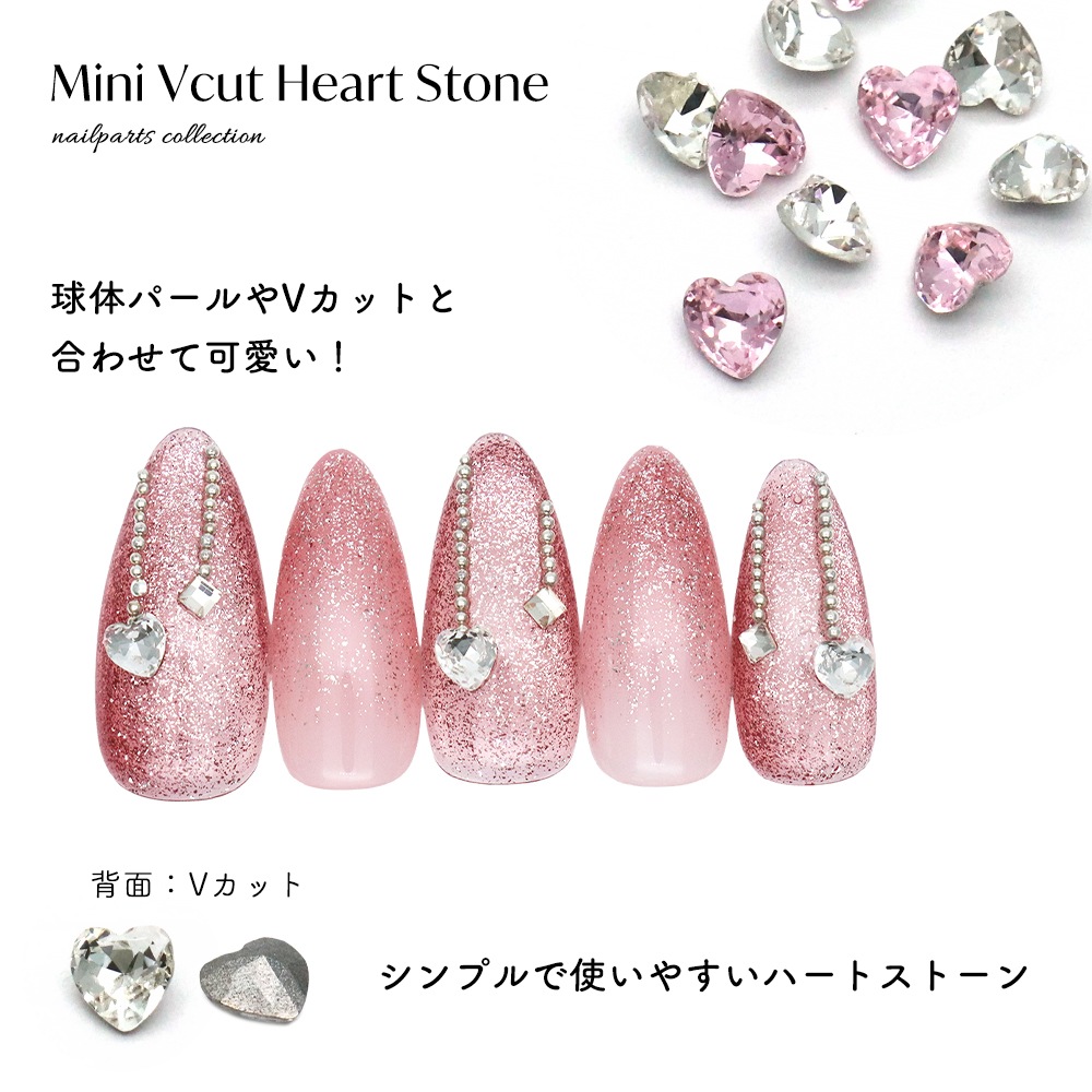 トップ > ラインストーン > Vカットストーン > 【ネコポス送料無料】ラインストーン ミニVカットハートストーン [クリスタル/ピンク] 全2色 5個入り