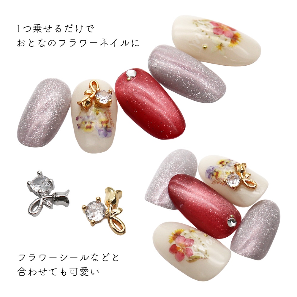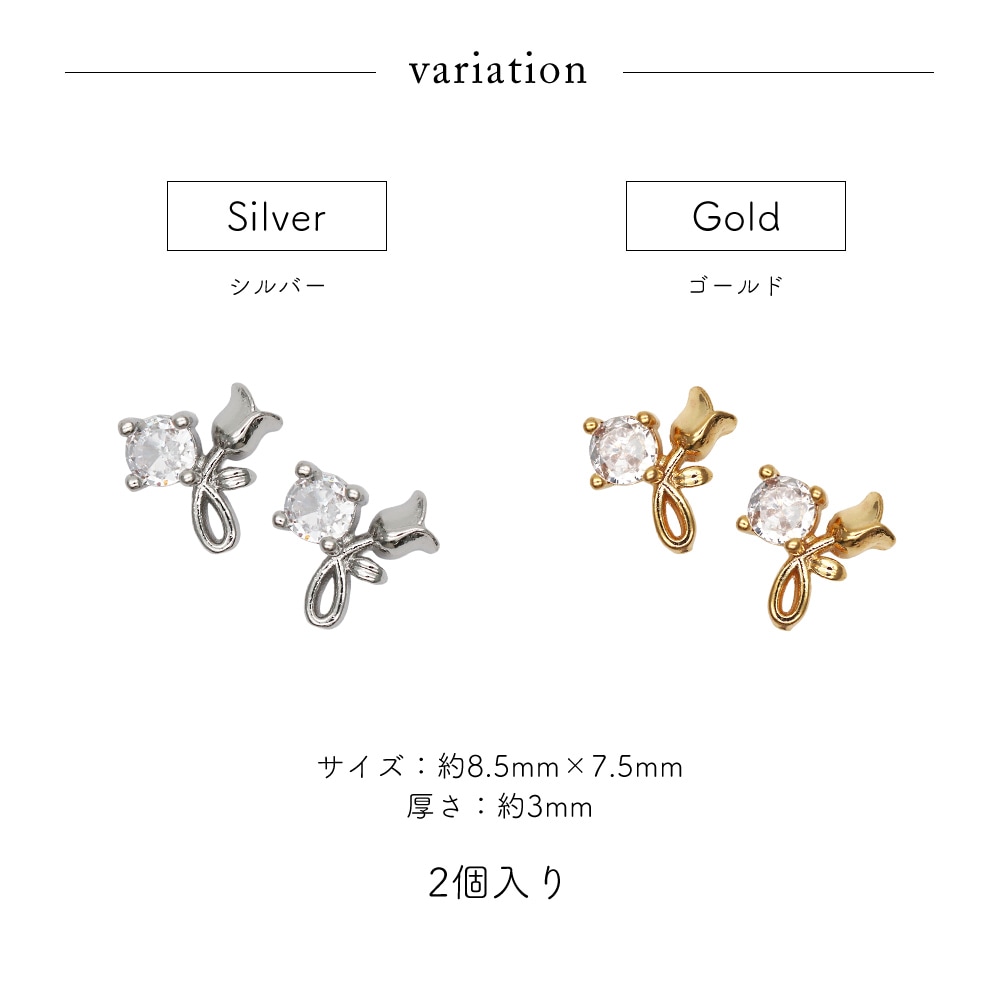【ネコポス送料無料】ネイルパーツ ジルコニア製 ジルコニア&チューリップパーツ [シルバー 銀/ゴールド 金] 全2色 2個入り