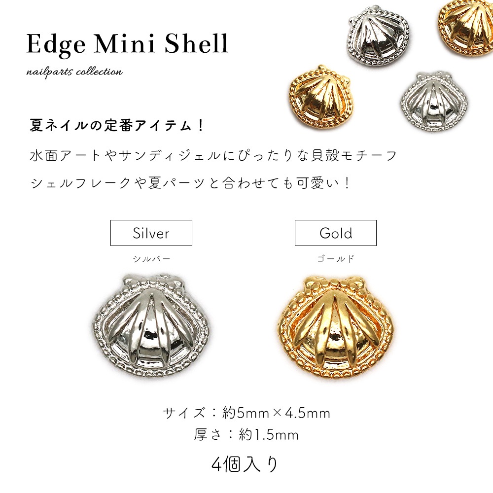 【ネコポス送料無料】ネイルパーツ フチ付きミニシェルパーツ [シルバー 銀/ゴールド 金] 4個入り