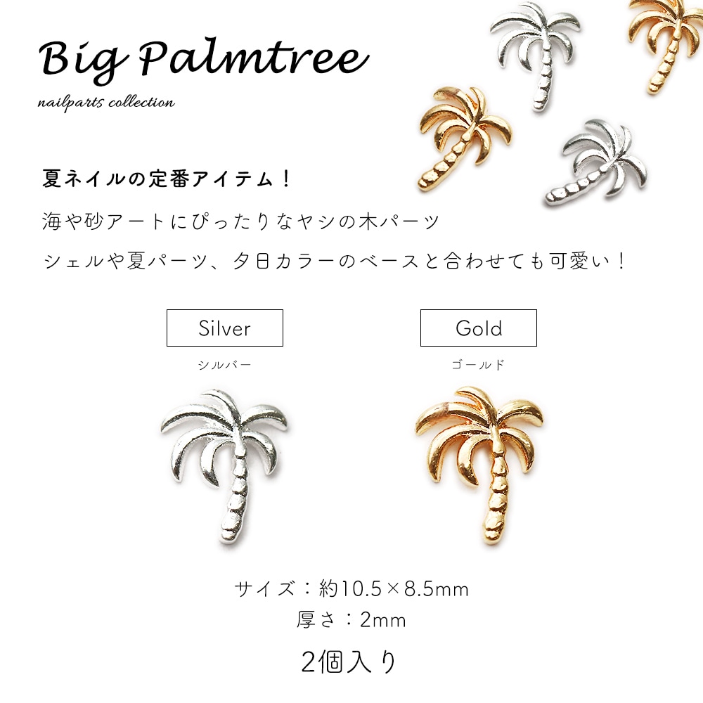 【ネコポス送料無料】ネイルパーツ ビッグパームツリーパーツ [シルバー 銀/ゴールド 金] 2個入り