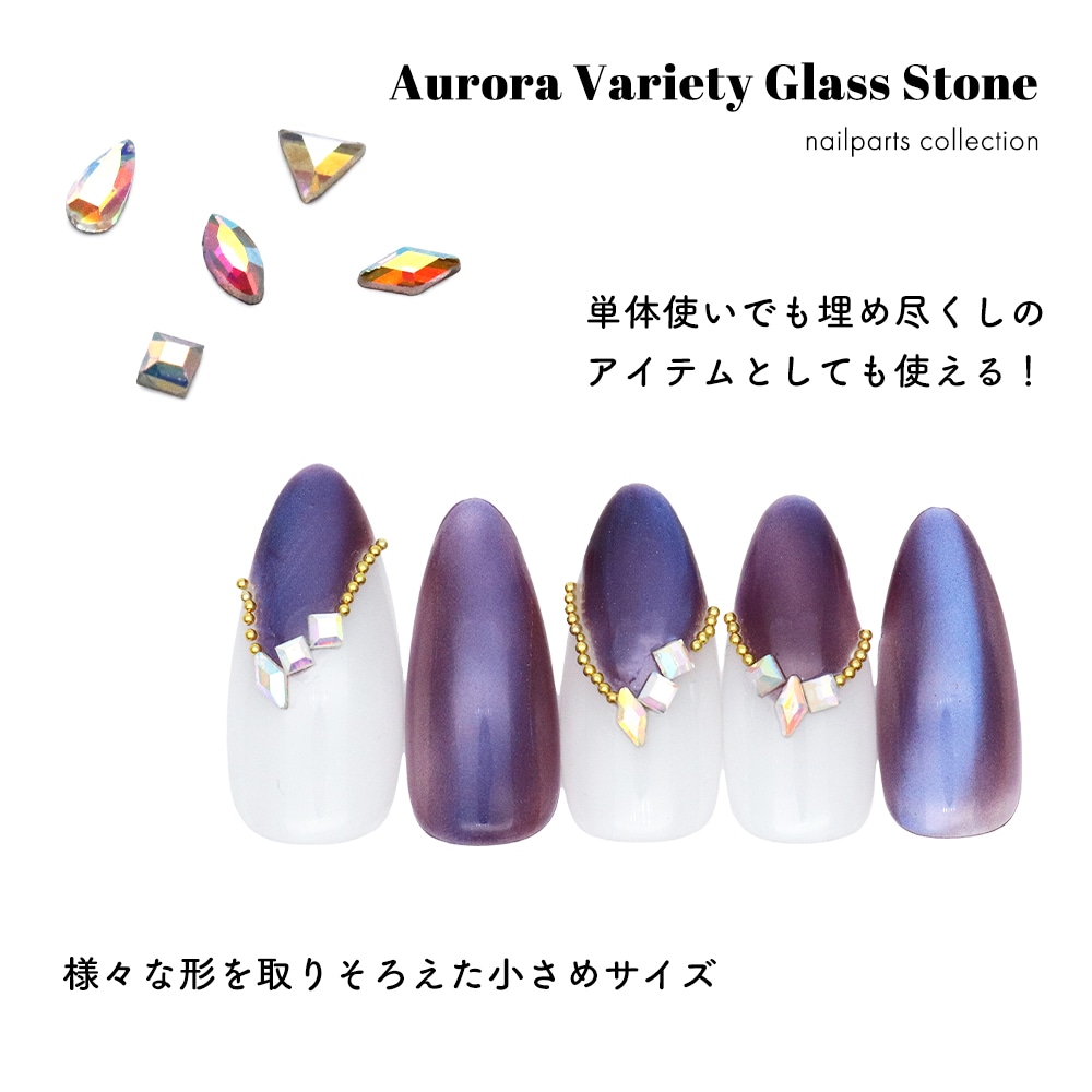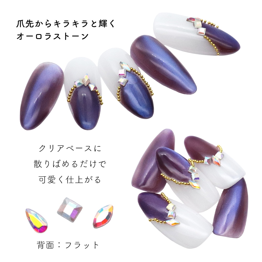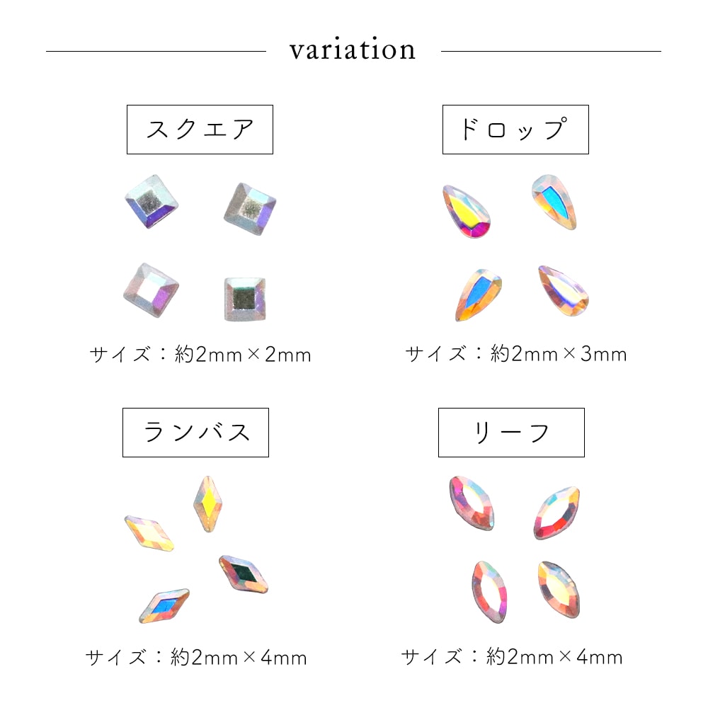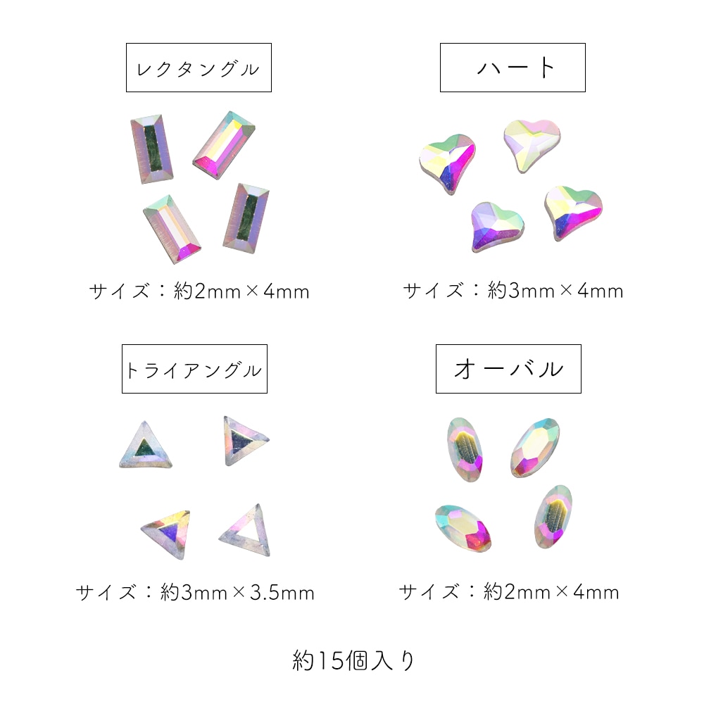 トップ > ラインストーン > ガラスラインストーン > 特殊カット > 【ネコポス送料無料】ラインストーン オーロラバラエティガラスストーン 全8種 約15個入り