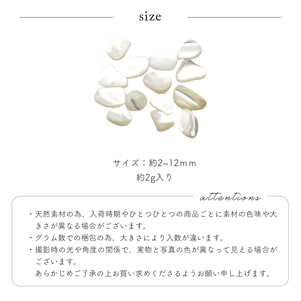 トップ > ネイルアート用品 > シェル > シェルストーン > 【ネコポス送料無料】ネイルパーツ ニュートラルカラーシェルストーン 全2種 約2g入り