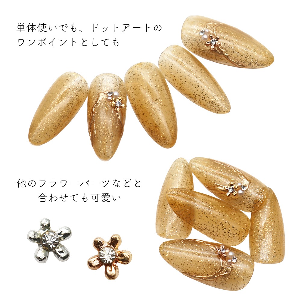 トップ > ネイルアート用品 > メタルネイルパーツ > 【ネコポス送料無料】ネイルパーツ ストーン付きタイニーフラワーパーツ [シルバー 銀/ゴールド 金] 全2色 3個入り