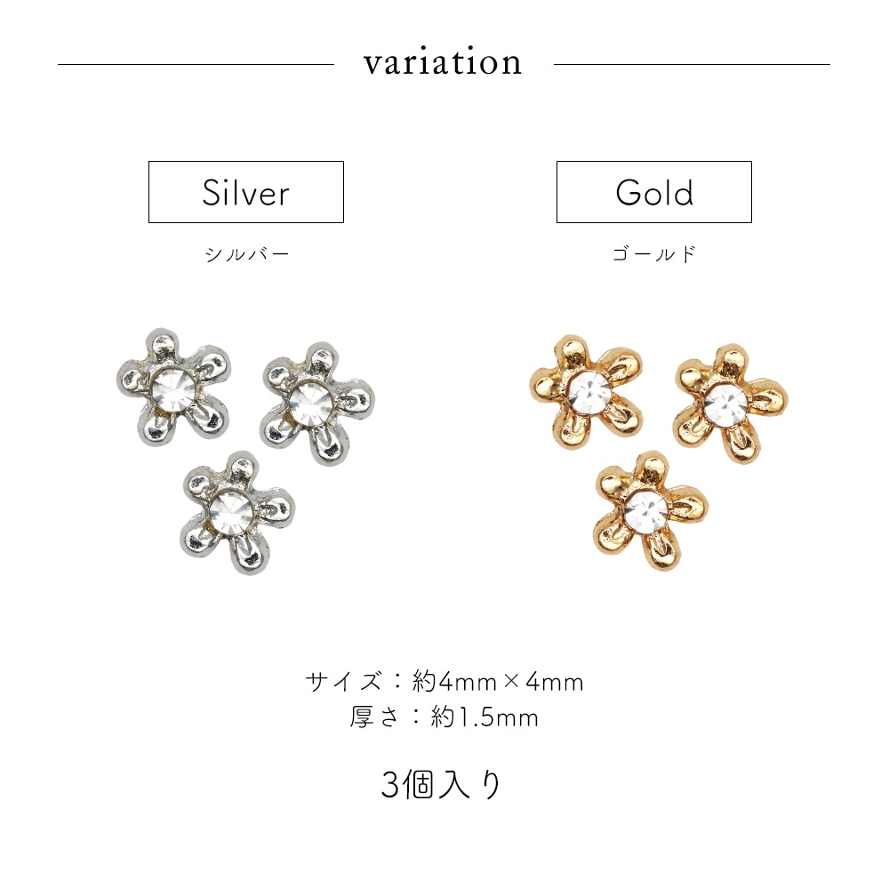 【ネコポス送料無料】ネイルパーツ ストーン付きタイニーフラワーパーツ [シルバー 銀/ゴールド 金] 全2色 3個入り