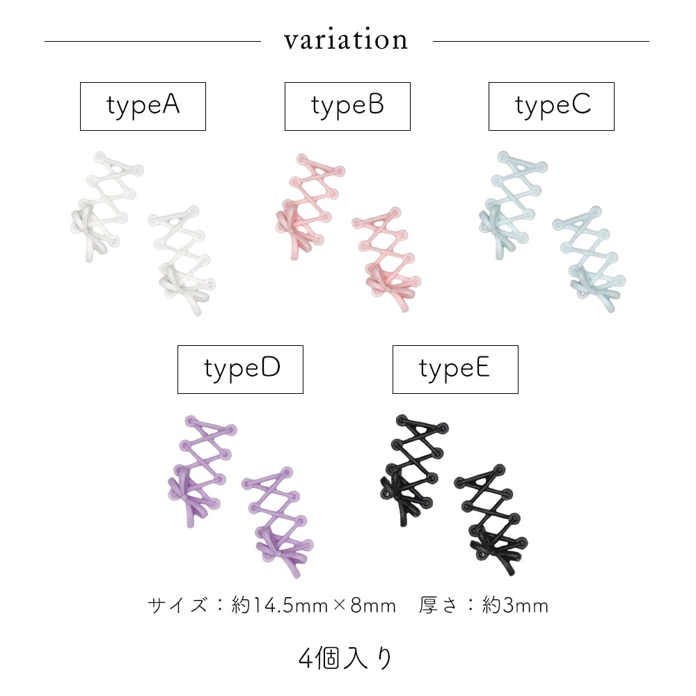 トップ > ネイルアート用品 > プラパーツ > リボン > 【ネコポス送料無料】ネイルパーツ ガーリー編み上げリボンパーツ 全5種 [4個入り]