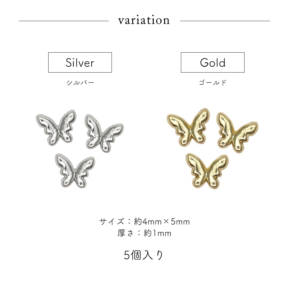 【ネコポス送料無料】ネイルパーツ ぷっくりシンプルミニバタフライパーツ [シルバー 銀/ゴールド 金] 5個入り