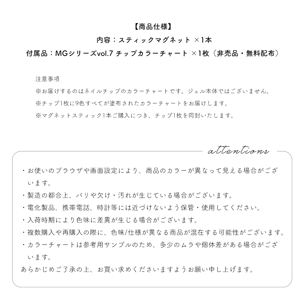 ジェルネイル用品 > マグネット > 【ネコポス送料無料】スティックマグネット 1本(irogel mgシリーズ新色カラーチャート[vol.7]付き)