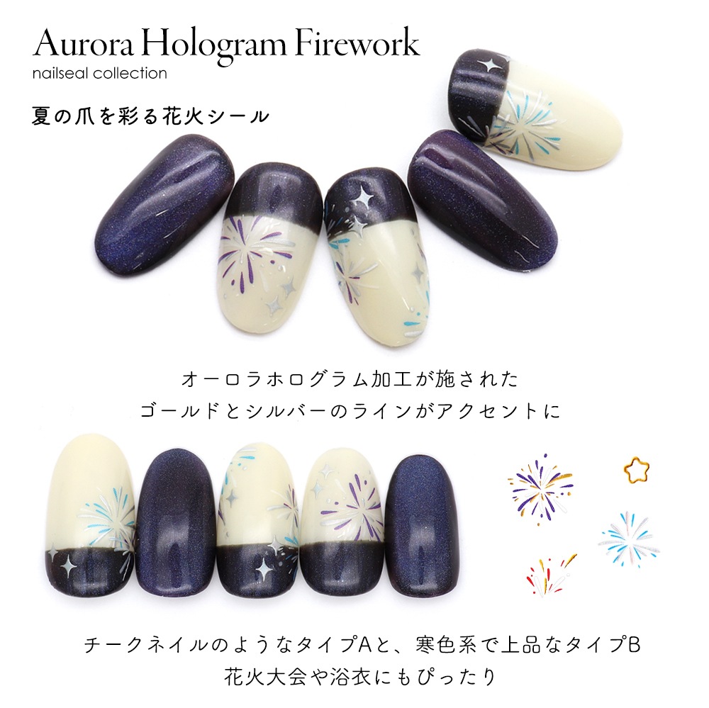【ネコポス送料無料】ネイルシール オーロラホロ花火シール [ゴールド 金/シルバー 銀] 全4種