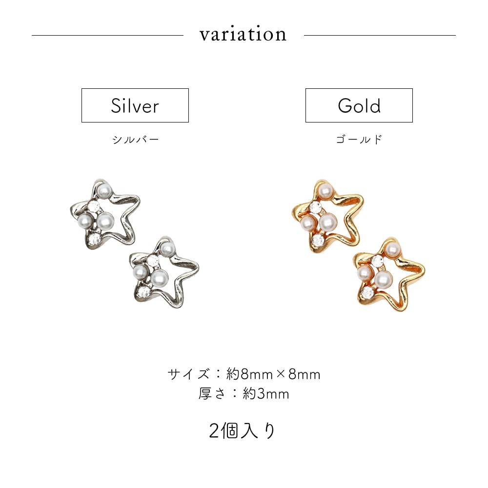 【ネコポス送料無料】ネイルパーツ パール&ストーン付きスターフレームパーツ [シルバー 銀/ゴールド 金] 全2色 2個入り