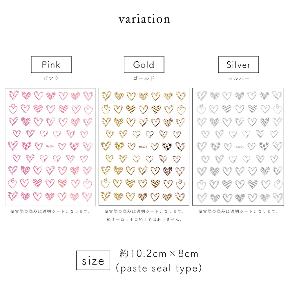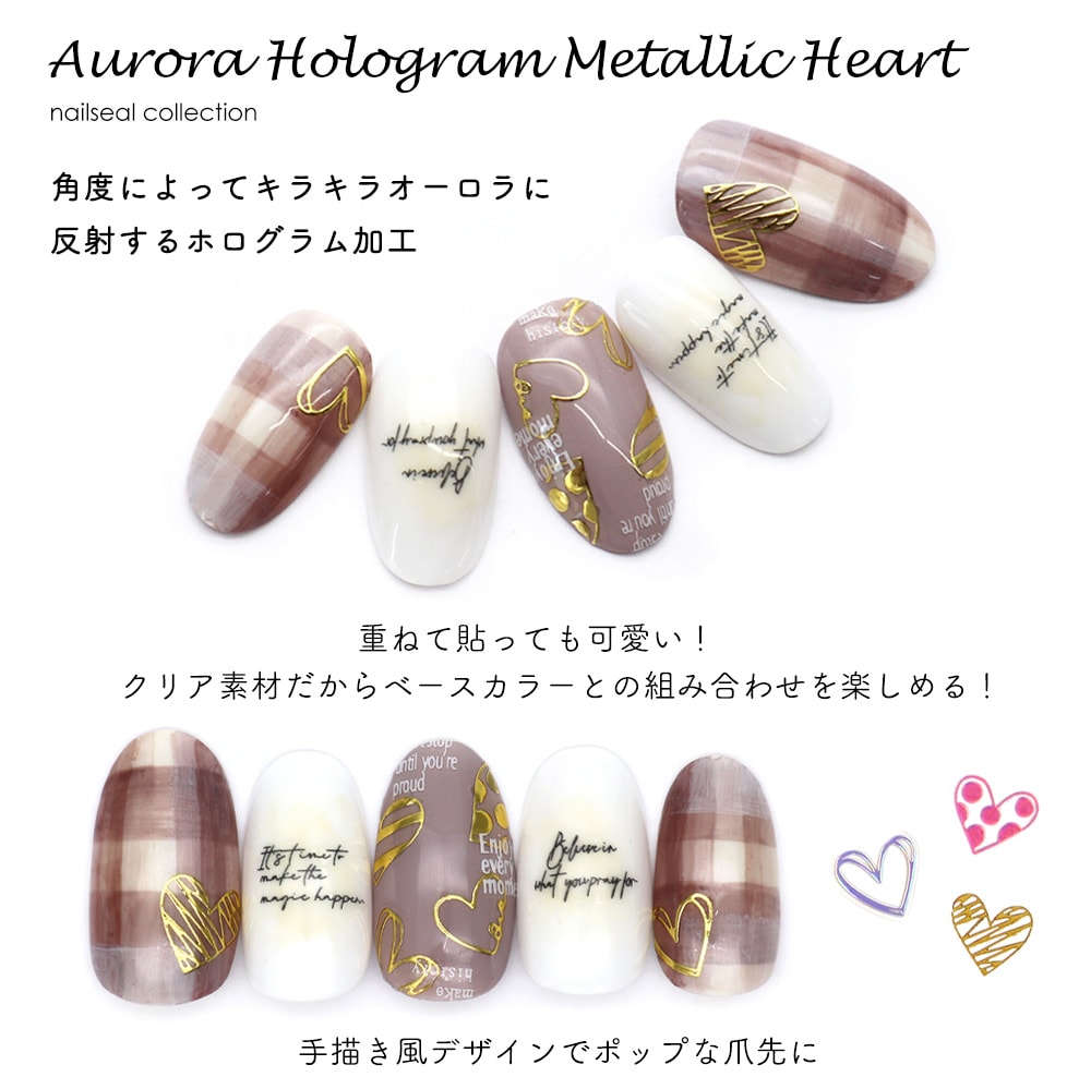 【ネコポス送料無料】ネイルシール オーロラホロ手描き風メタリックハートシール