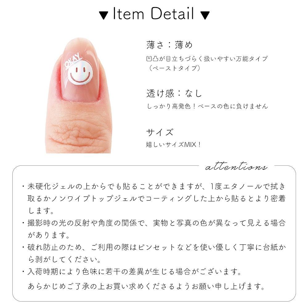 ノンワイプトップジェルでコーティングした上から貼るとより密着します。