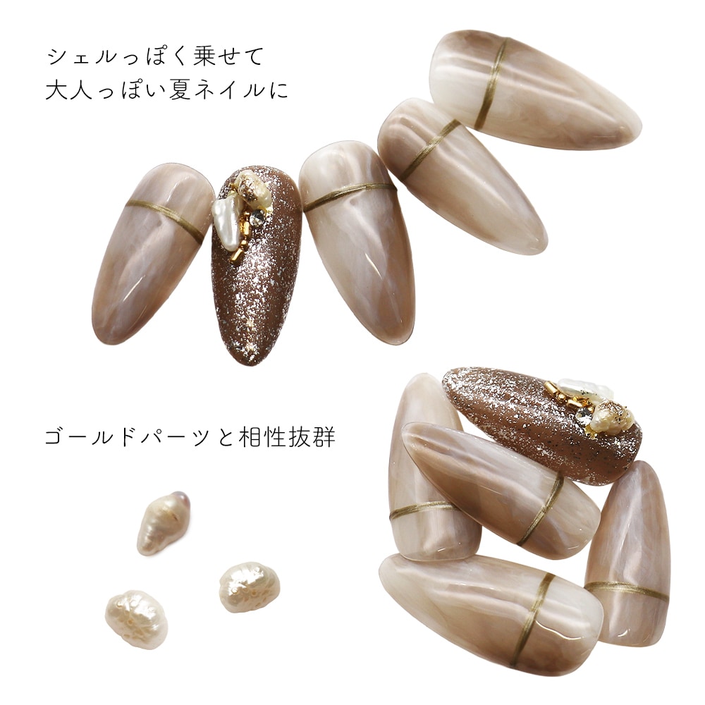 シェルっぽく乗せて大人っぽい夏ネイルに