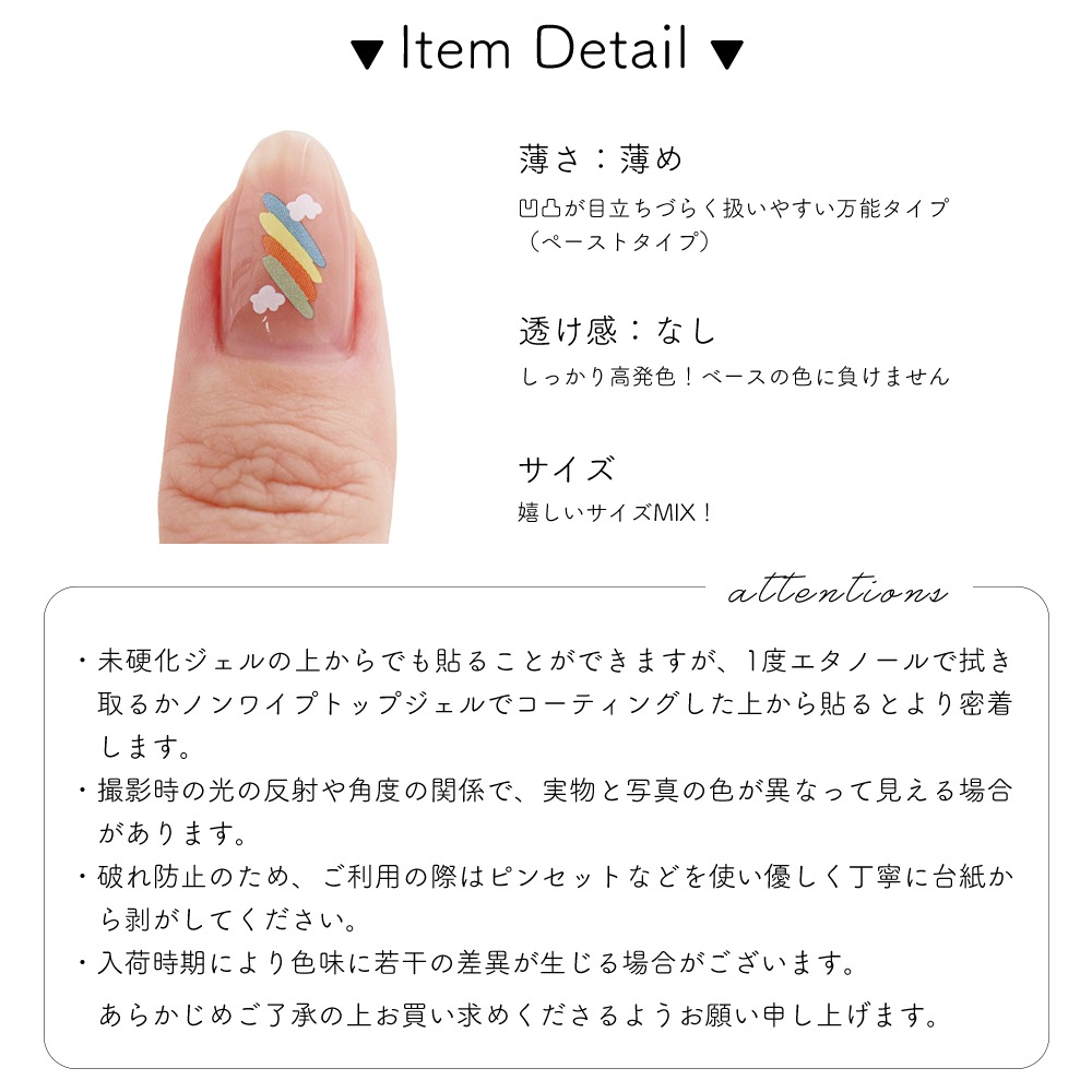 ノンワイプトップジェルでコーティングした上から貼るとより密着します。
