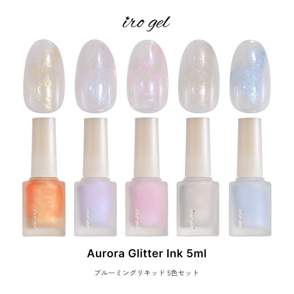 ジェルネイル用品 > ジェル > 全色セット > 【ネコポス送料無料】irogel ブルーミングリキッド オーロラグリッターインク 全5色セット [ink06,ink07,ink08,ink09,ink10] 各約5ml入り
