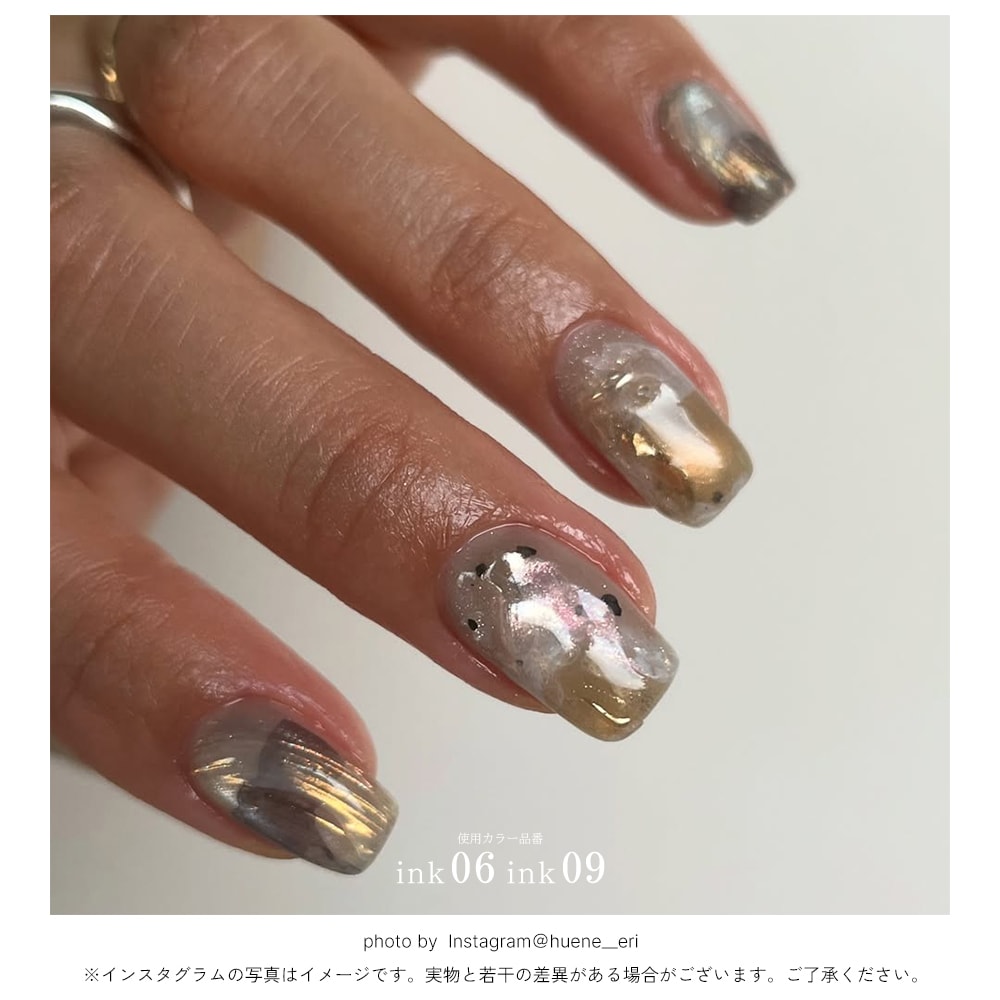 お手持ちのインク、ラメと組み合わせたり、部分的に重ねるだけでも印象的に。