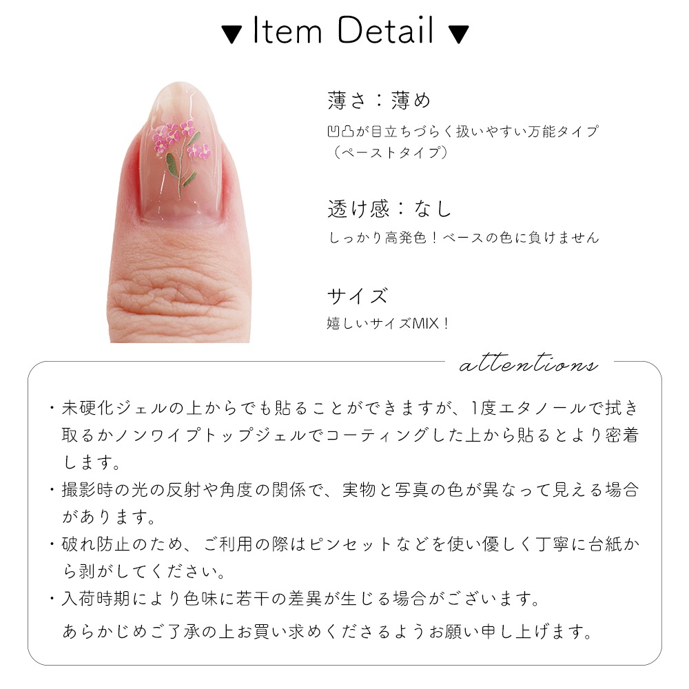 ・破れ防止の為、ご使用の際はピンセットなどを使い優しく丁寧に台紙から剥がして下さい。