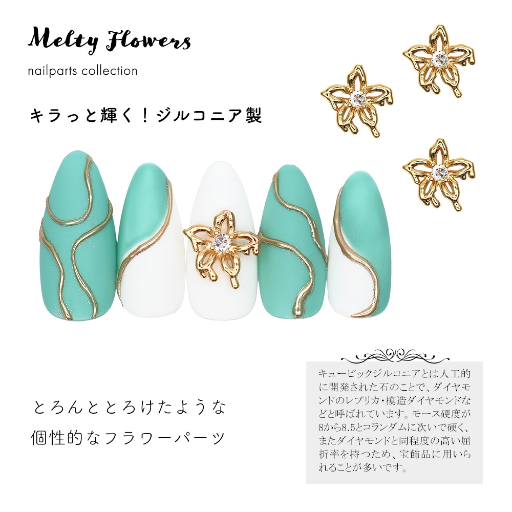 【ネコポス送料無料】ネイルパーツ ジルコニア製 メルティフラワーパーツ 2個入り