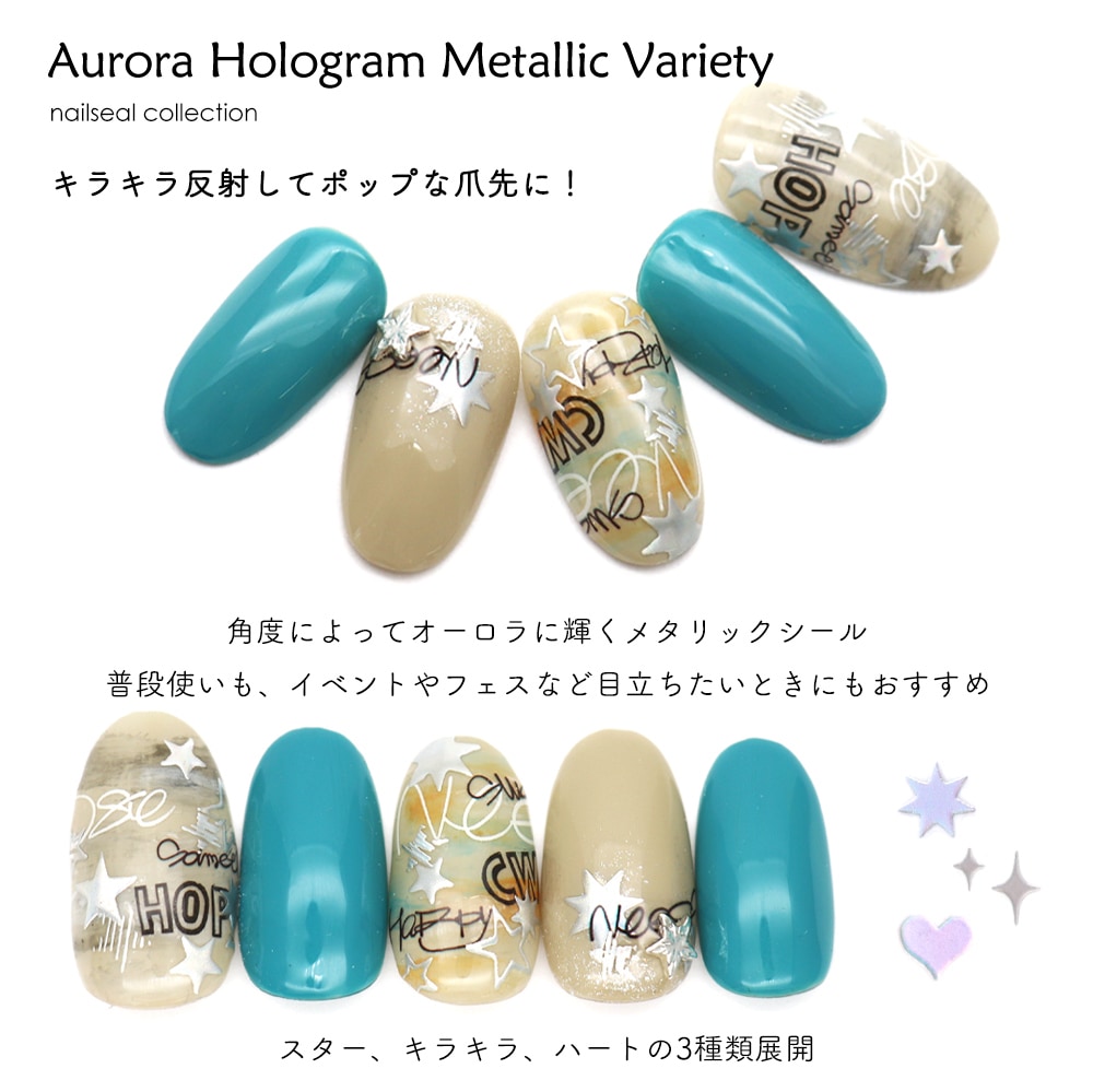 トップ > ネイルアート用品 > ネイルシール > ネイルシール > キュート&ポップ > 【ネコポス送料無料】ネイルシール オーロラホロメタリックバラエティシール 全3種