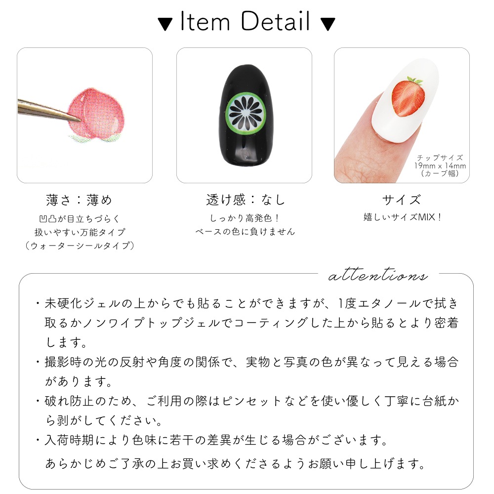 ノンワイプトップジェルでコーティングした上から貼るとより密着します。