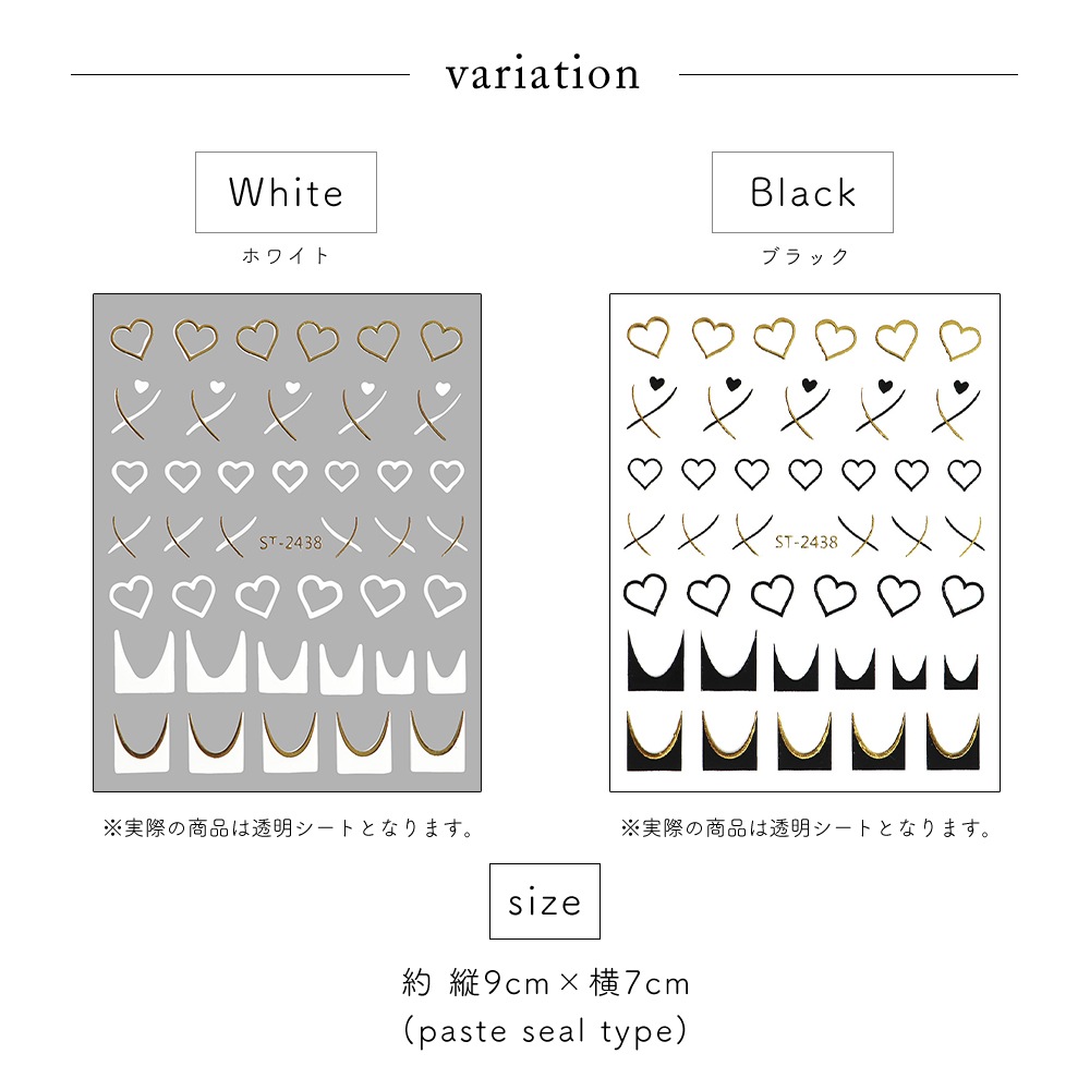 【ネコポス送料無料】ネイルシール ゴールドハート&フレンチシール [ホワイト 白/ブラック 黒] 全2色
