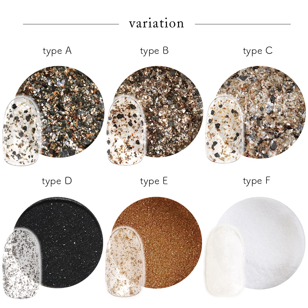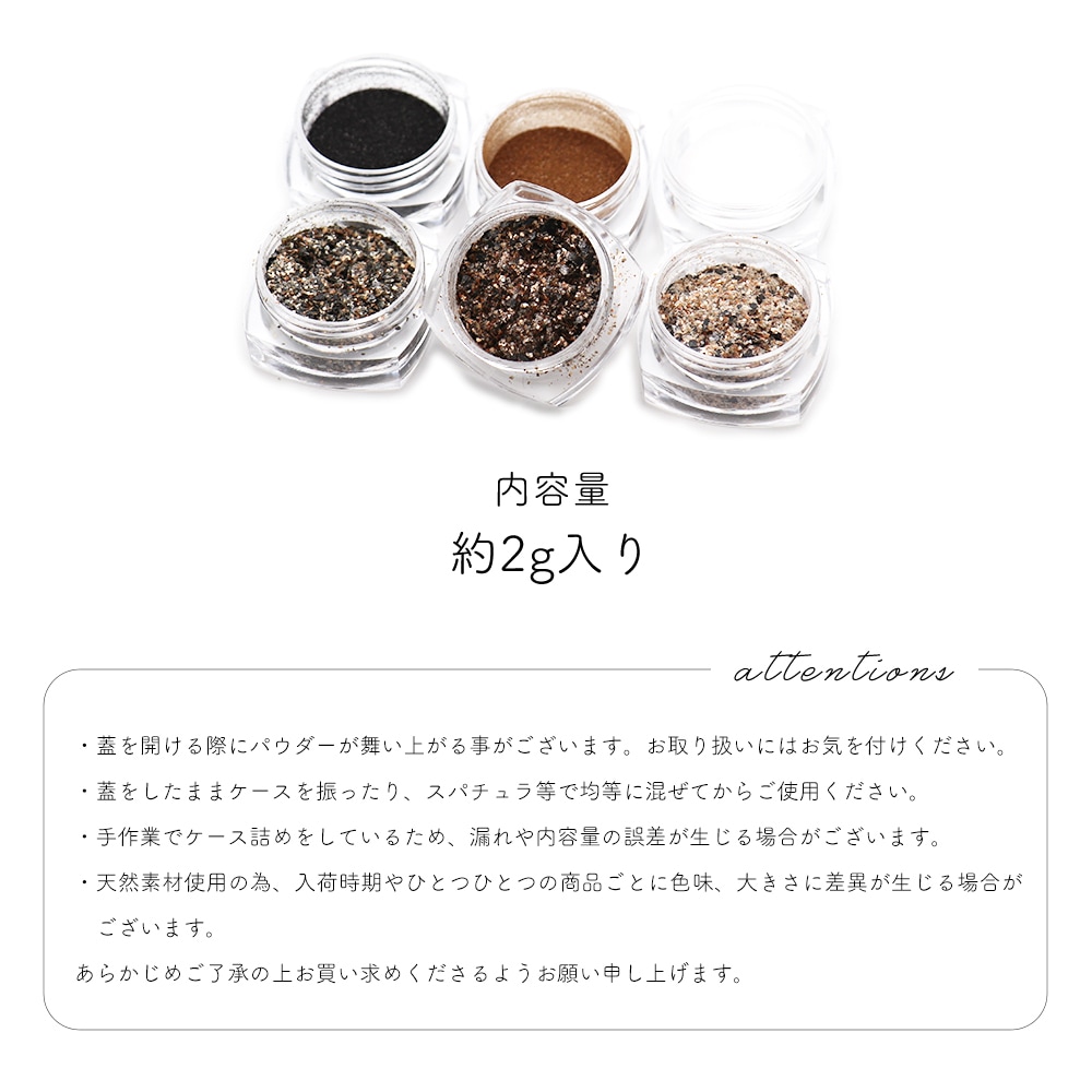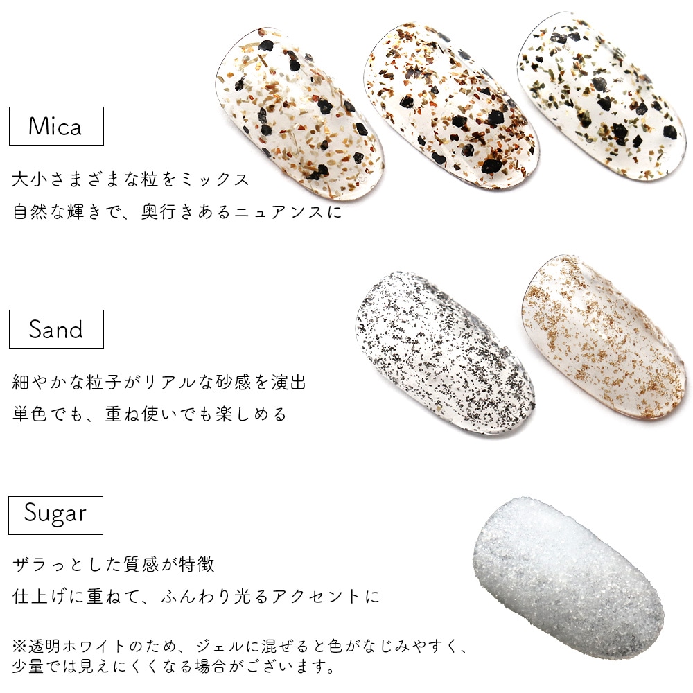 トップ > ネイルアート用品 > パウダー > 【ネコポス送料無料】ネイルアート テクスチャーパウダー [マイカ/サンド/シュガー] 約2g入り 全6種