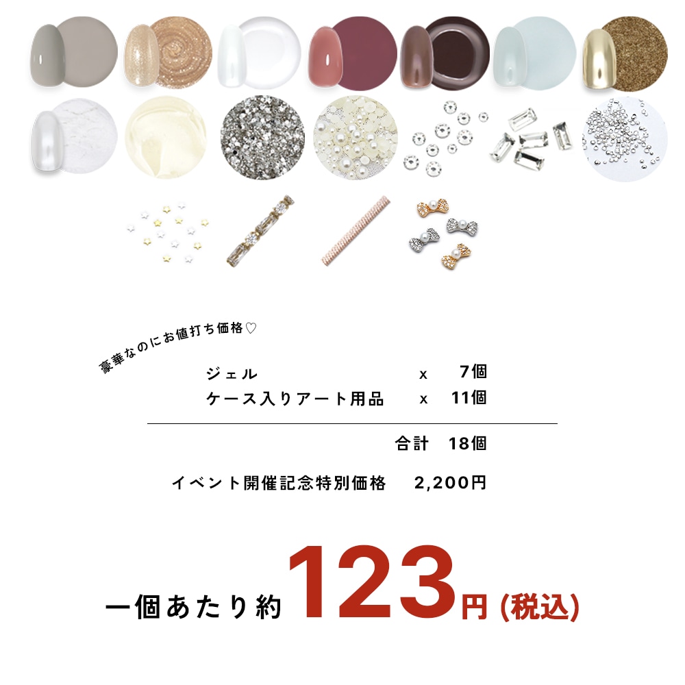 カラージェルやアート用品がたっぷり合計18点入ったお得なセット!