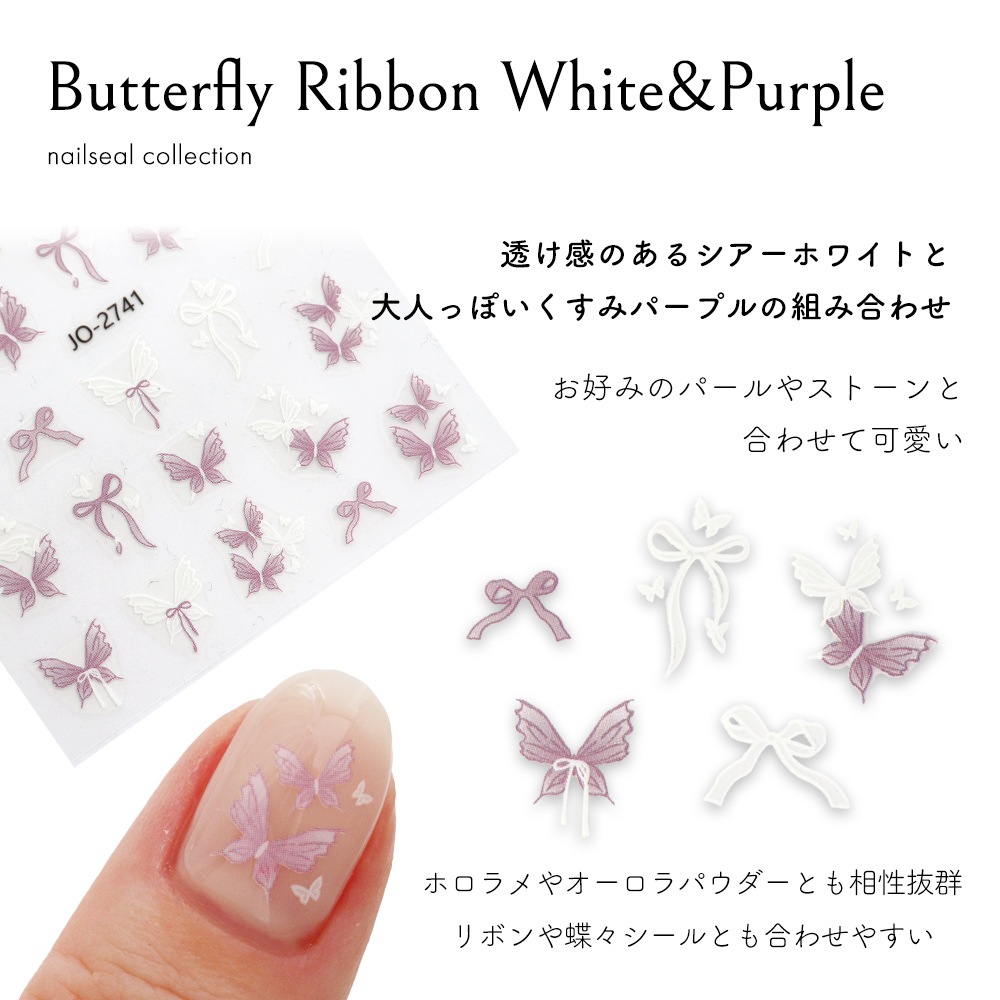 トップ > ネイルアート用品 > ネイルシール > ネイルシール > キュート&ポップ > 【ネコポス送料無料】ネイルシール バタフライリボン ホワイト&パープルシール