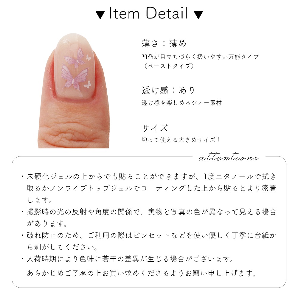 ノンワイプトップジェルでコーティングした上から貼るとより密着します。